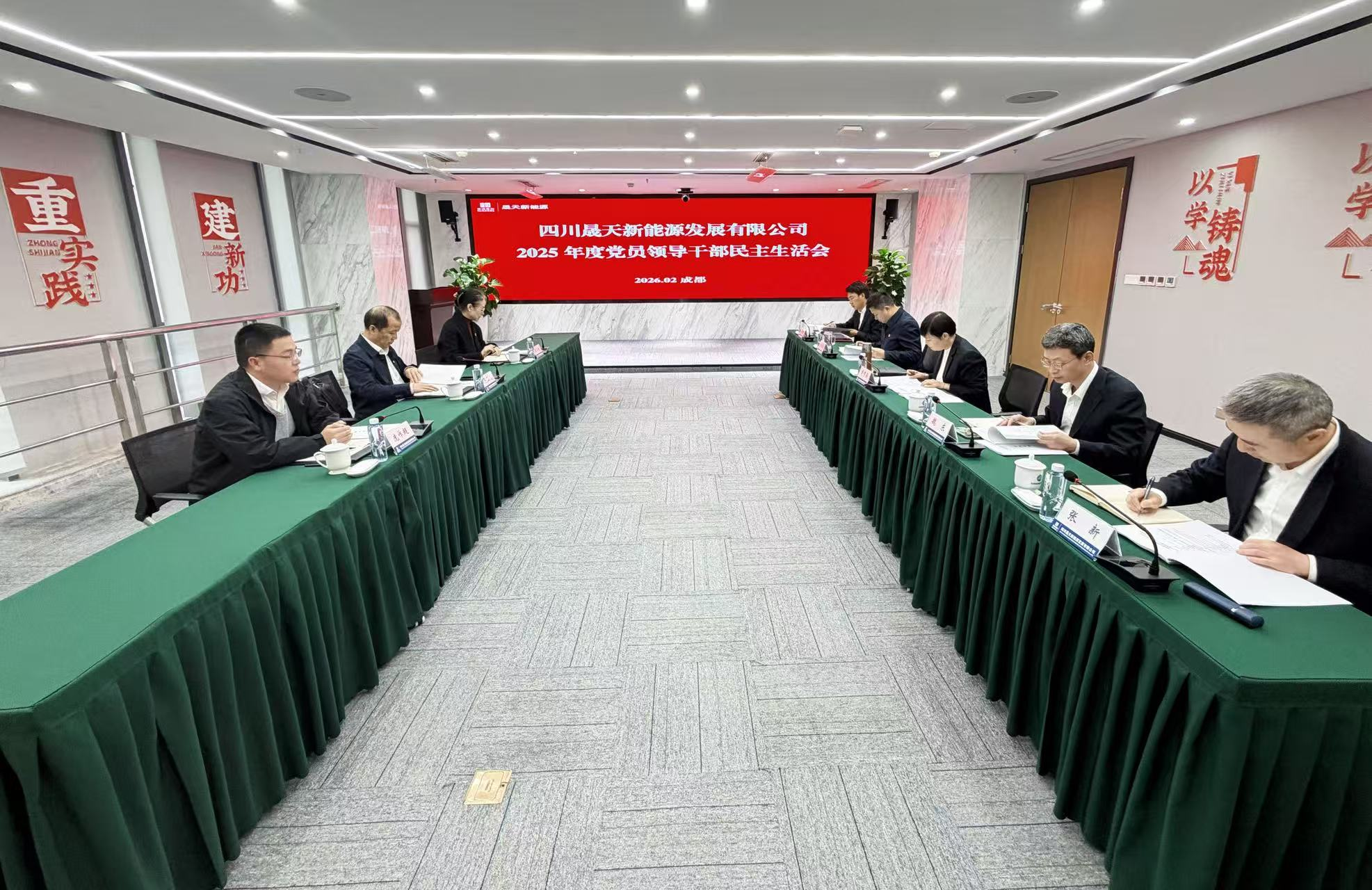 2月27日,晟天新能源党委召开2025年度党员领导干部民主生活会。会议深入学习贯彻习近平新时代中国特色社会主义思想,全面贯彻落实党的二十届四中全会精神,围绕主题深入查摆问题、深刻剖析根源,严肃开展批评与自我批评,提出务实整改举措,切实把会议成果转化为推动公司高质量发展的实际行动。新筑股份党委副书记、总经理夏玉龙带队到会指导。公司主要负责人贾秀英主持会议,全体领导班子成员参加会议。